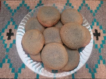 Scoop approx. 2 tablespoons of cookie dough on a lined cookie sheet 2 - 3 inches apart - about 12 cookies. Bake for 11 minutes and remove from the oven. Rest cookies on the cookie sheet for about 10 minutes